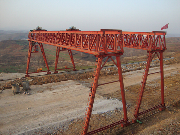 提梁機是一種為橋梁建設而專門設計的一種門式起重機。提梁機主要由拼裝式主梁、支腿、天車等組成,構件間采用銷軸及高強螺栓連接,易于拆裝、運輸;與普通門式起重機相比,安裝方便快捷,經濟實用。適用于經常流動的道路橋梁建設單位。